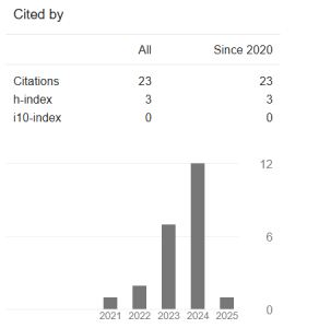 - Google Scholar Profile: Research work has been cited 23 times.